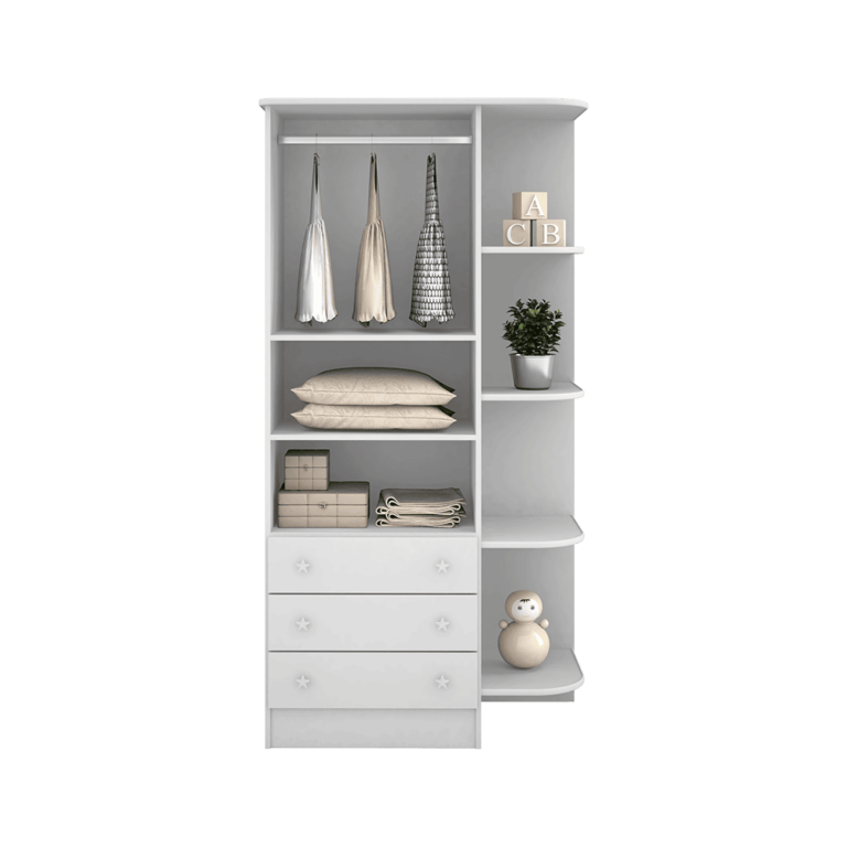 Cabideiro oblongo metálico e ótima divisão interna para roupas longas;